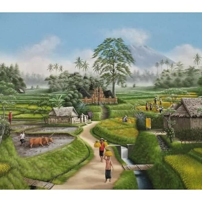Lukisan Pemandangan Kampung Bali Yang Sangat Indah Shopee Indonesia