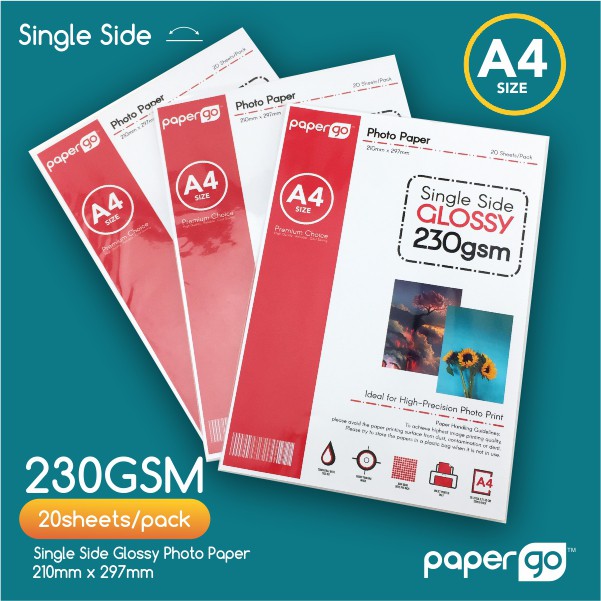 230gsm Single Side Glossy A4 Photo Paper 20sheets Pack Papergo Photo Paper Glossy Paper Inkjet Paper Shopee Malaysia
