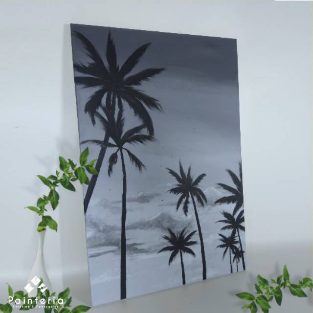 Lukisan Pemandangan Alam Pantai Silluate Siluate Modern Minimalis Hitam Putih Kanvas Dekorasi Rumah Shopee Indonesia
