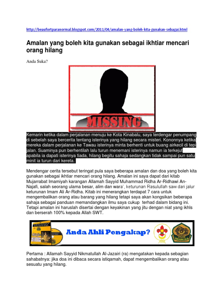 Amalan Yang Boleh Kita Gunakan Sebagai Ikhtiar Mencari Orang Hilang